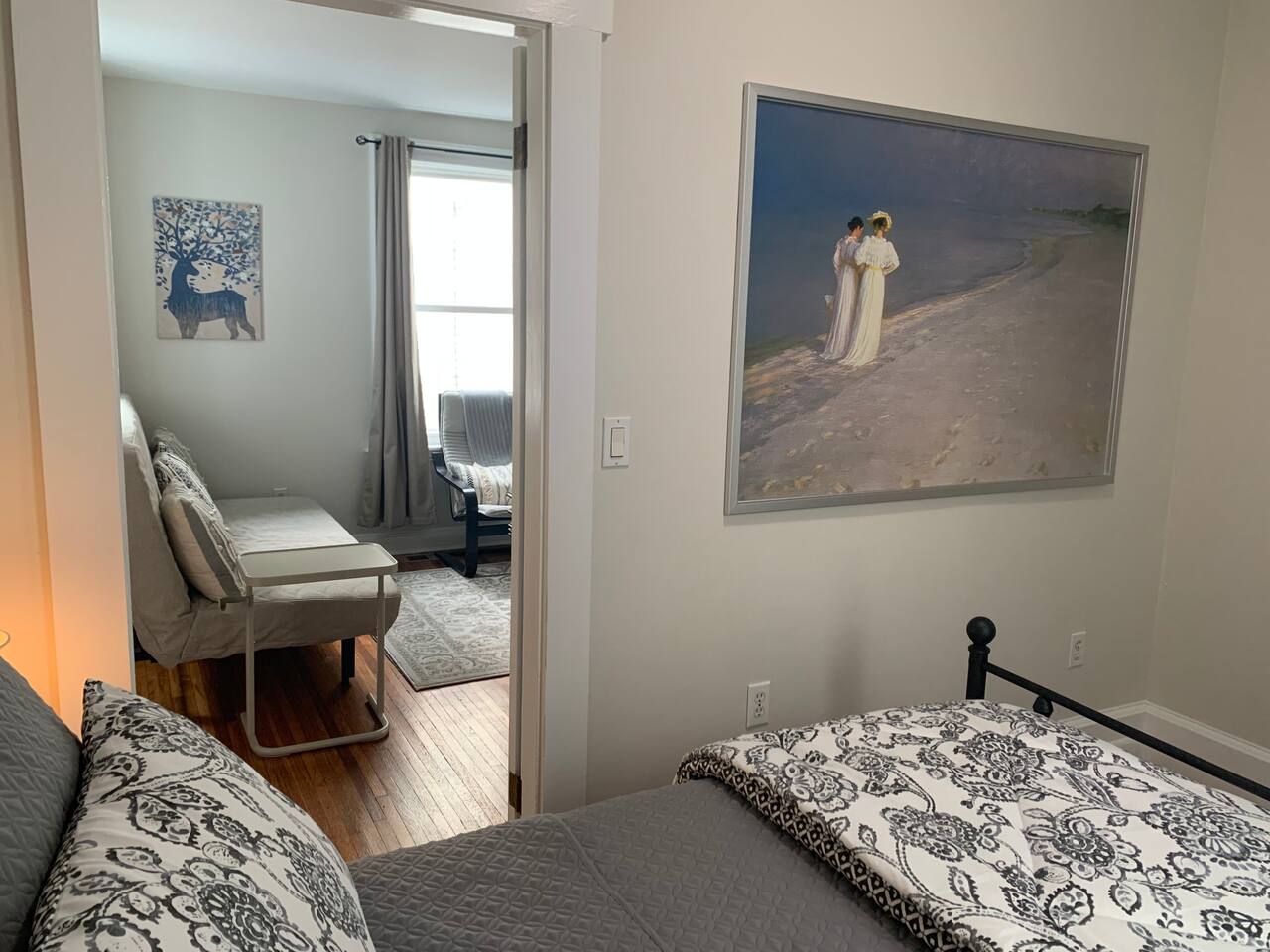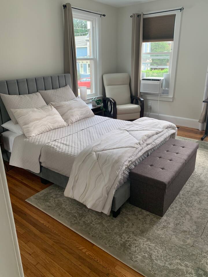 This Boston apartment is located in Somerville on the 1st floor. The entrance to the apartment is at the rear of home by the deck. The apartment has 2 bedrooms, a full kitchen with dining table, living room, and a full bathroom. The living room also has a sleeping sofa. We also have a pack-and-play for the little one. If you need it, just ask. Beautiful deck in rear of property to enjoy dining, tea or coffee. Cleaners have access to second floor laundry through non-common area front door and hallway between the home's floors. Cleaners will not access any occupied units which are separated by locked doors. If you require more than one parking space on site during your stay, please contact us to determine availability. The charge per stay for a second space is $75 total.