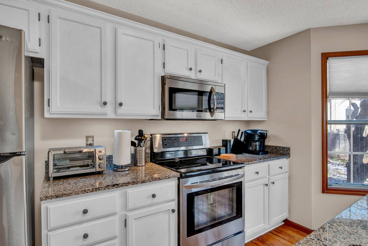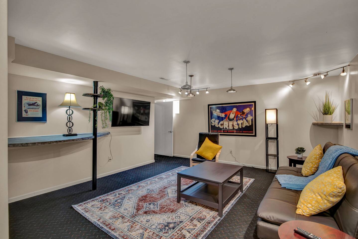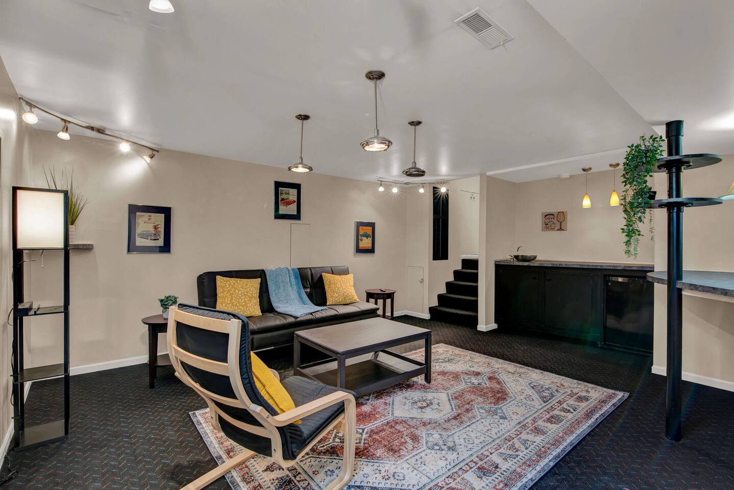 Great location. 2-story great room with ample seating, an 8-person dining room table, and full kitchen with granite counters. Beautifully appointed with artwork , impeccable king bed master bedroom with large walk-in closet. Lover level with wet bar, mini-fridge and 3 large smart TVS in the home that can mirror cell phones, with high speed internet capability. Separate office in lower level with an ergonomic chair. Ground and pod coffee maker and coffee included. Pet welcome!