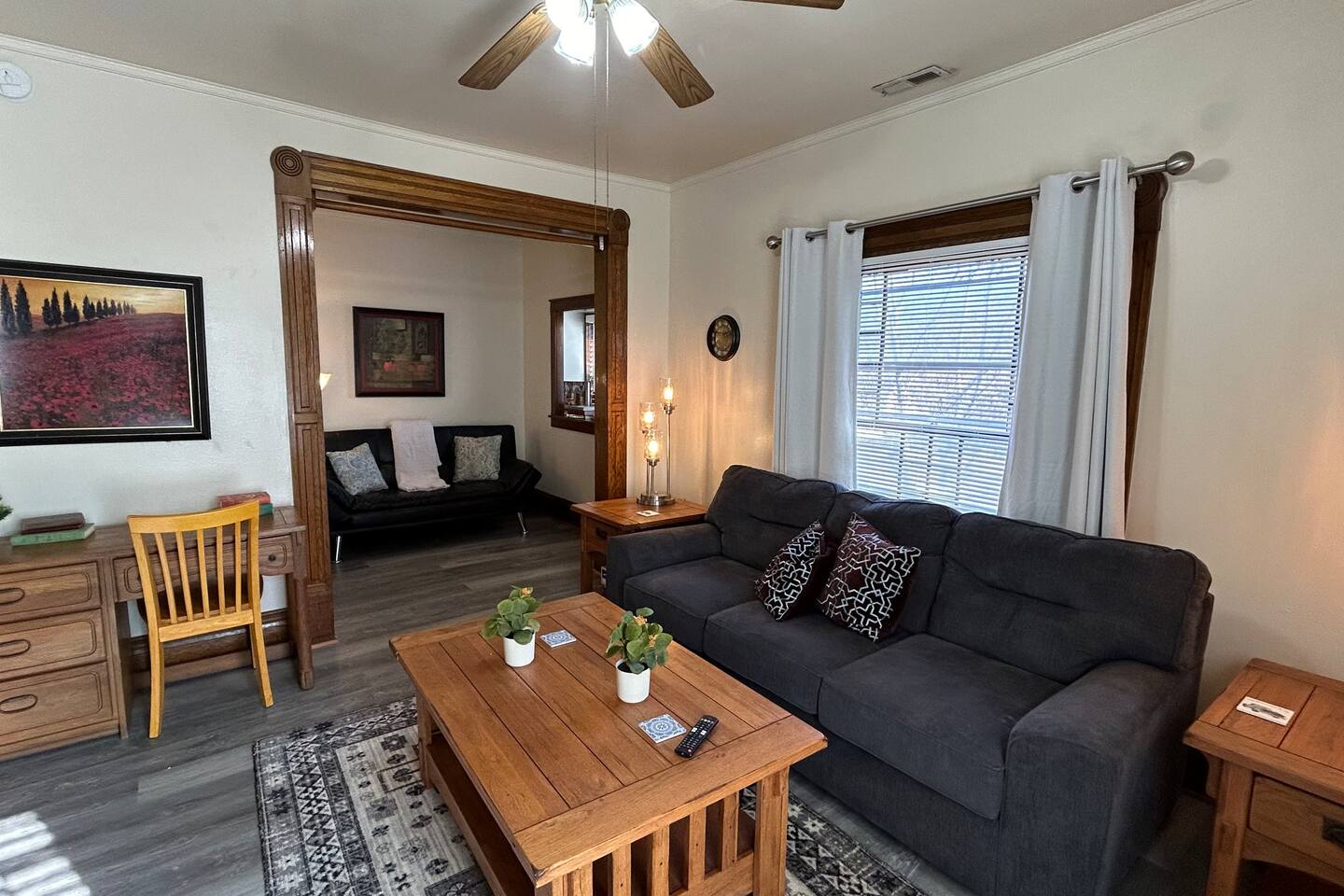 Enjoy a stylish experience at this centrally-located place. Located in the center of Topeka, this private old-charm 1BR w/king bed and den condo (NOT SHARED) located adjacent to the Stormont Vail Hospital , downtown, and trendy NOTO. Close to the Kansas Capitol and I-70. Follow the paths of the FreeState Movement and the fed desegregation of schools at the Brown v. Bd of Ed National Historic Site. PET WELCOME!