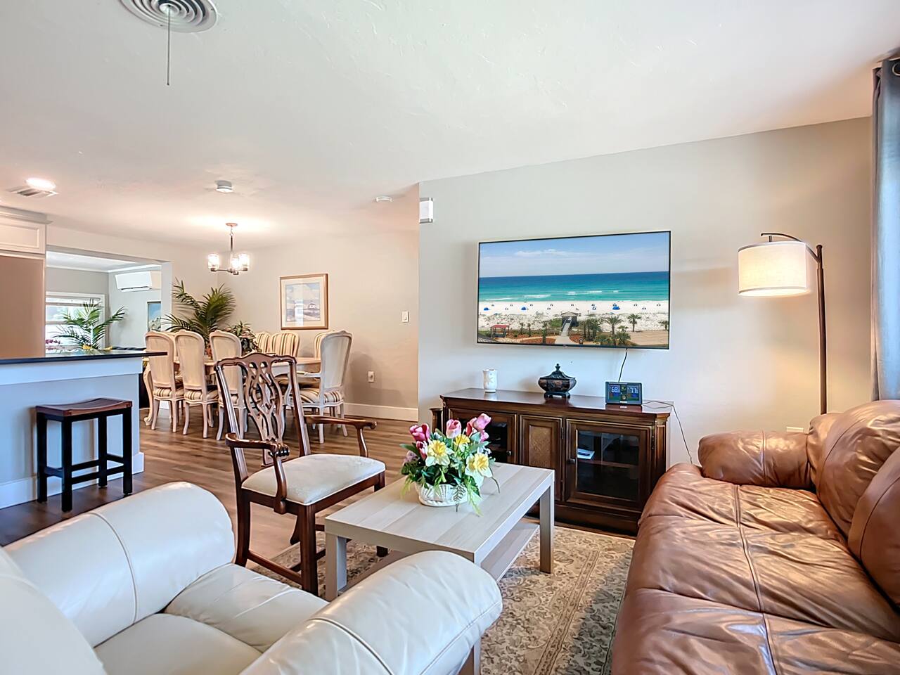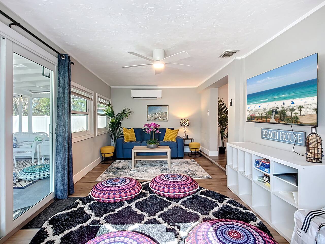 3-Bdr family friendly on a quiet street in subdivision closests to Siesta Beach with one King, one Queen, and two Full beds, and spacious living area. 8 minutes to Siesta Key Beach. RecRoom with a Queen Sleeper and office. One car garage. Fenced in large private backyard, and patio. Located near renowned beaches, parks, gardens, biking trails, and golf. Costco, Publix less than half a mile away. Please inquire about parking Boat, RV or trailer in driveway - can accommodate up to certain sizes.